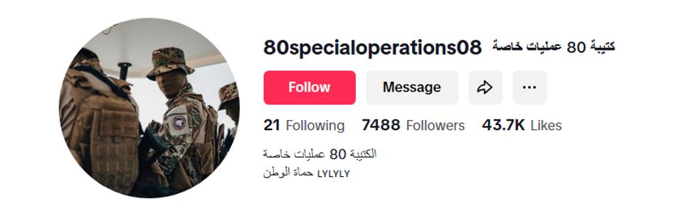 Abbiamo confrontato le immagini con alcuni video reperiti su fonti aperte nei social network Facebook e Tik Tok: si può osservare che il simbolo ritratto sul patch è riconducibile a militari dell’Ottantesimo Battaglione per le “Operazioni Speciali” della Centoundicesima Brigata, che è capeggiata da Abdul Salam Al-Zoubi, attuale Sottosegretario/Viceministro della Difesa nel Governo di unità nazionale (GNU) di Tripoli, nominato a questo incarico nel luglio 2024 dal Primo Ministro Dbeibah.