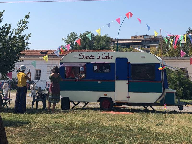 La roulotte "Stradaincanto" con la sua suggestione poetica e onirica permetterà di creare un'arte di strada per piccoli e grandi legata all'immaginario del viaggio e della transumanza.