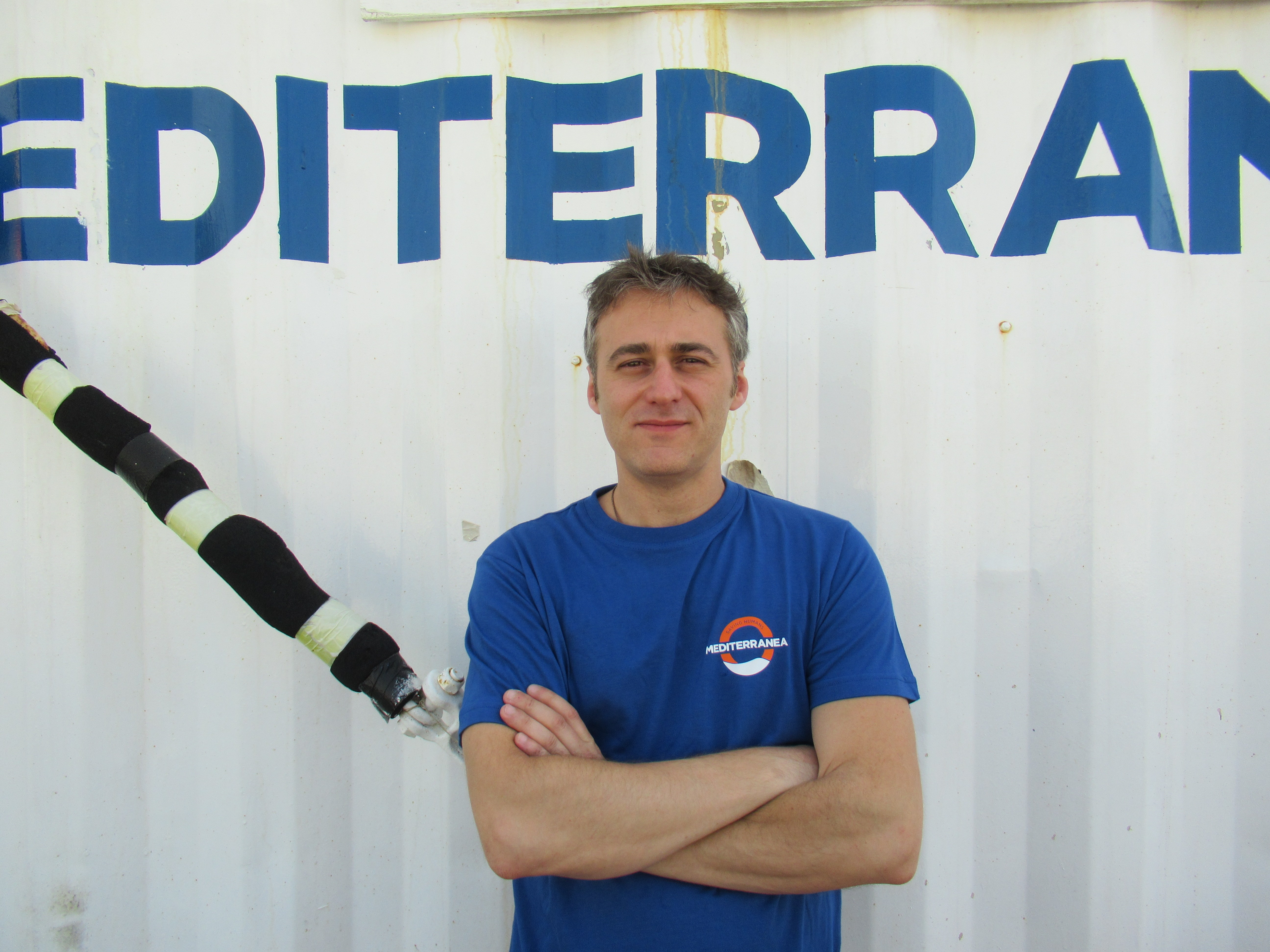 “Sedetevi,” dice Mantici con tono pacato. “Siamo qui per soccorrervi. Vi porteremo a quella nave laggiù», dice, indicando la Mare Jonio. "Ma dovete stare calmi e seduti."